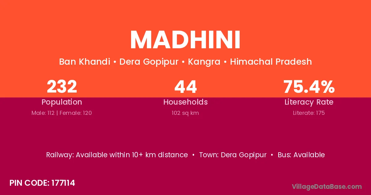 Madhini village has a total population of 232 people, of which 112 are males and 120 are females.