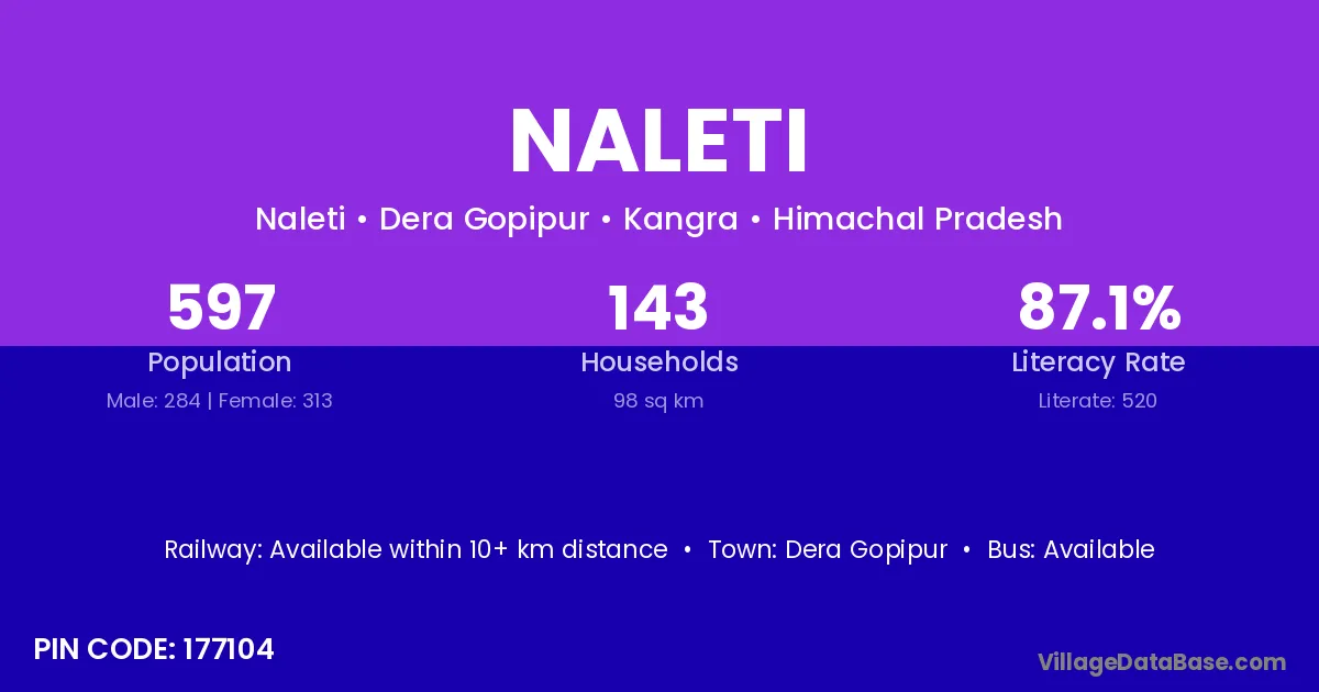 According to Census 2011 information, the village code of Naleti village is 177104.