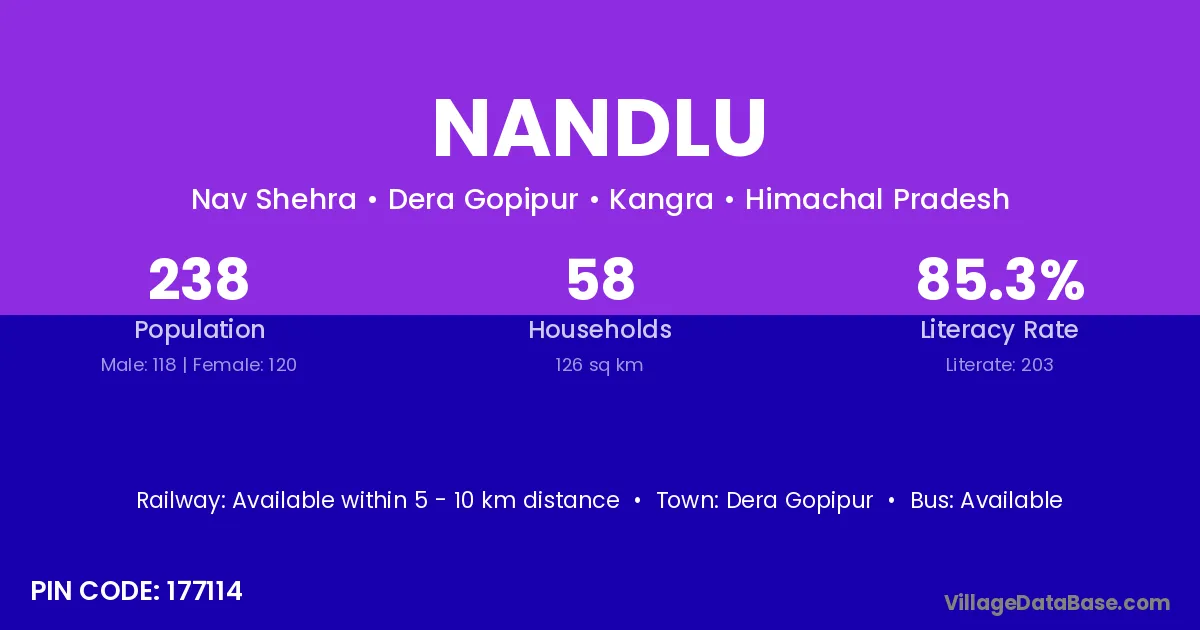 Nandlu village is located in the Dera Gopipur Tehsil of the Kangra district in Himachal Pradesh .