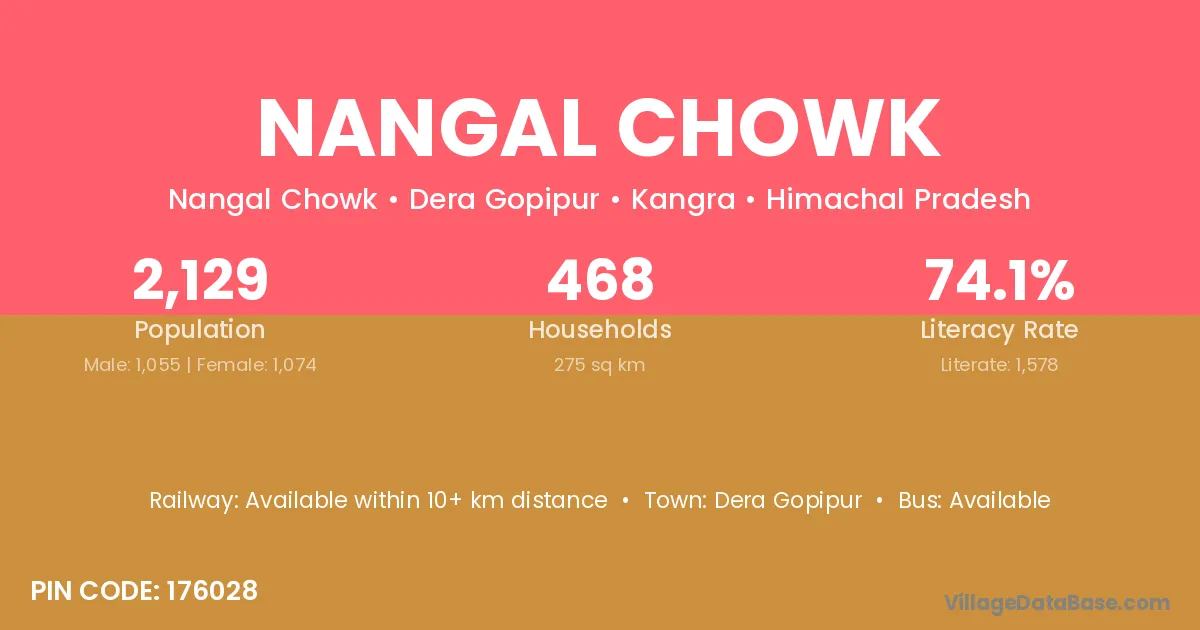 Nangal Chowk village has a total population of 2,129 people, of which 1,055 are males and 1,074 are females.