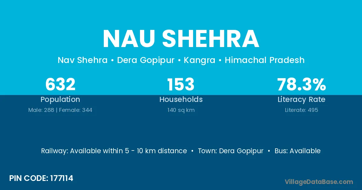 Nau Shehra village has a total population of 632 people, of which 288 are males and 344 are females.