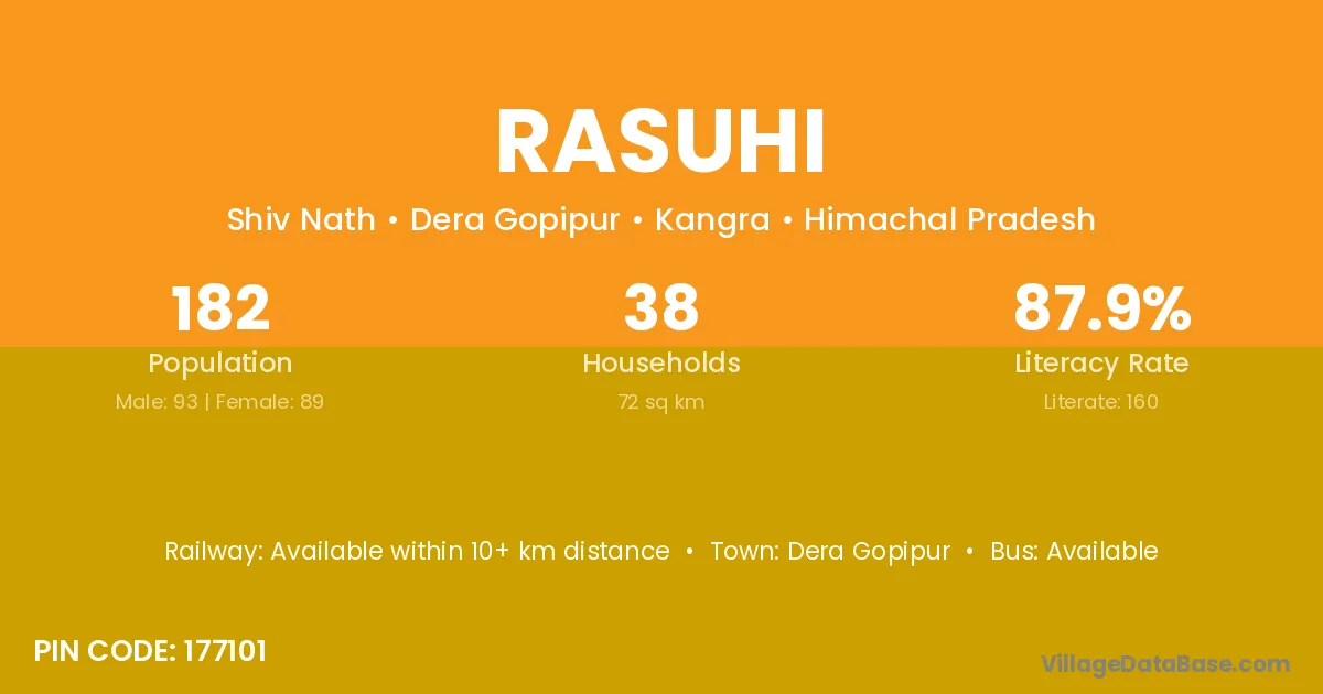 Rasuhi village is located in the Dera Gopipur Tehsil of the Kangra district in Himachal Pradesh .