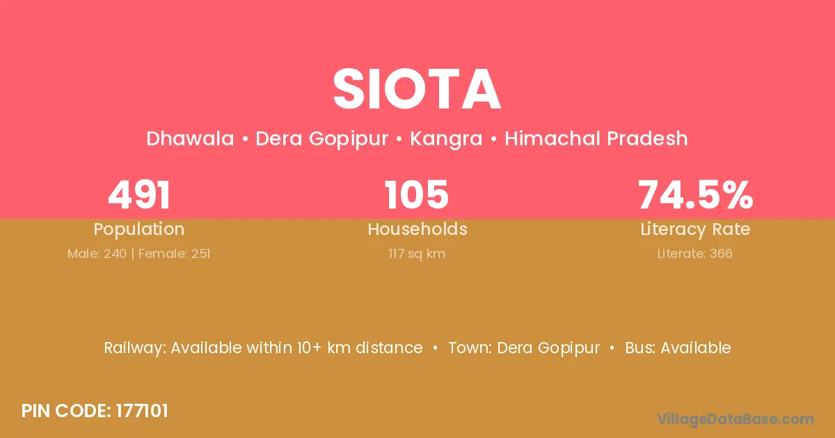 According to Census 2011 information, the village code of Siota village is 177101.