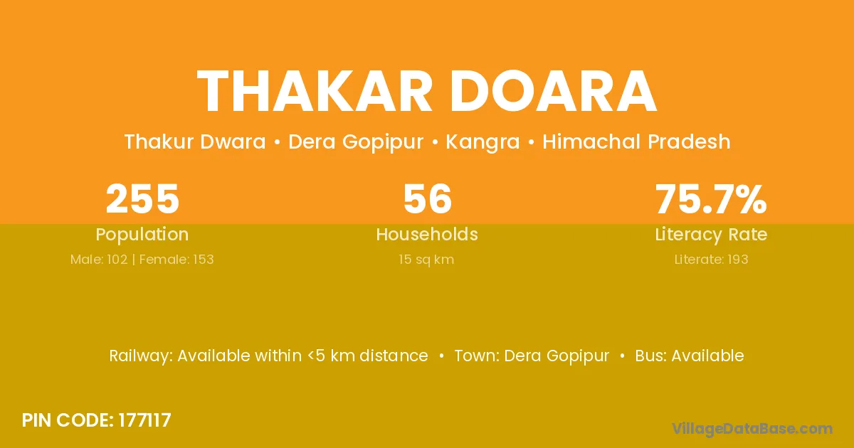 Thakar Doara village has a total population of 255 people, of which 102 are males and 153 are females.