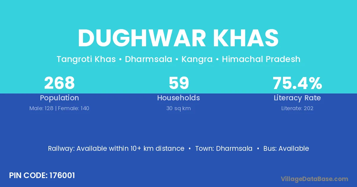 Dughwar Khas village has a total population of 268 people, of which 128 are males and 140 are females.