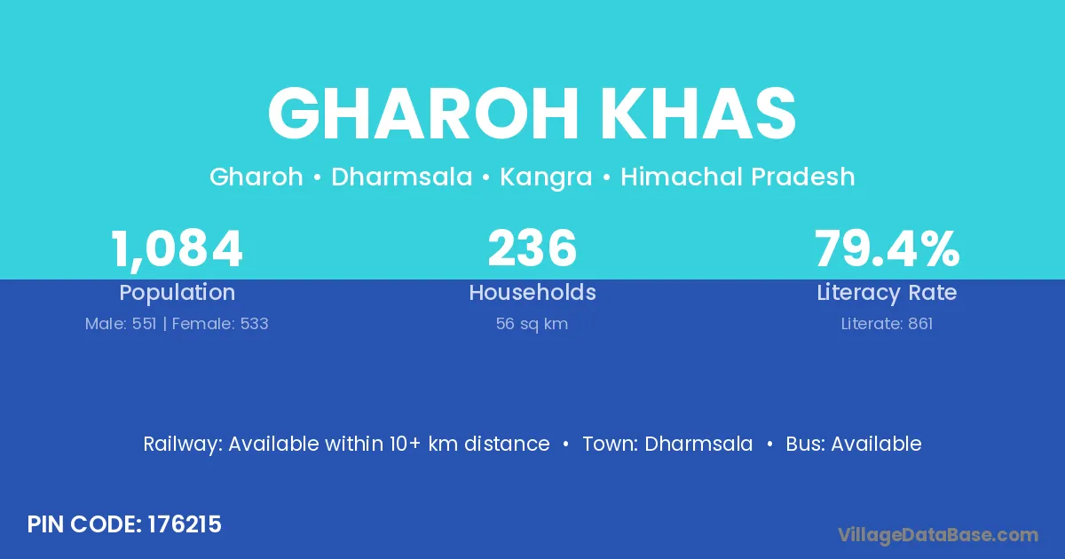 Dharmsala is the nearest town to Gharoh Khas village for major economic activities