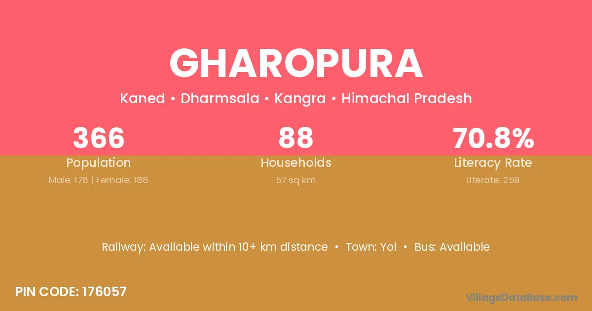 Gharopura village has a total population of 366 people, of which 178 are males and 188 are females.