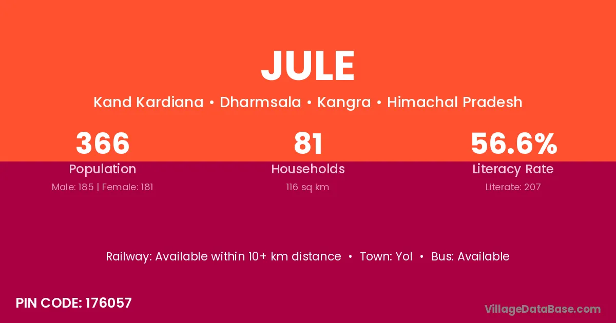 Jule village has a total population of 366 people, of which 185 are males and 181 are females.