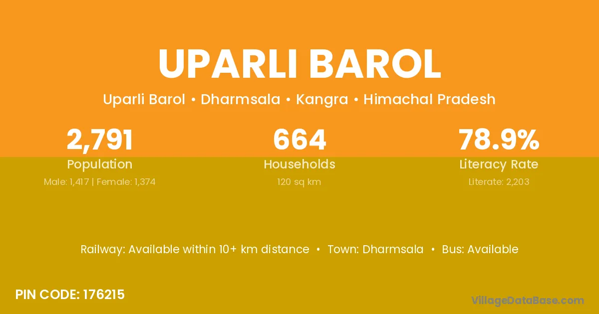 Dharmsala is the nearest town to Uparli Barol village for major economic activities