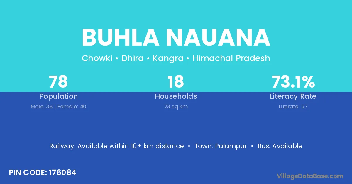Palampur is the nearest town to Buhla Nauana village for major economic activities
