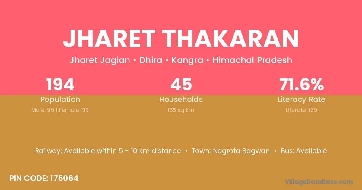 Nagrota Bagwan is the nearest town to Jharet Thakaran village for major economic activities