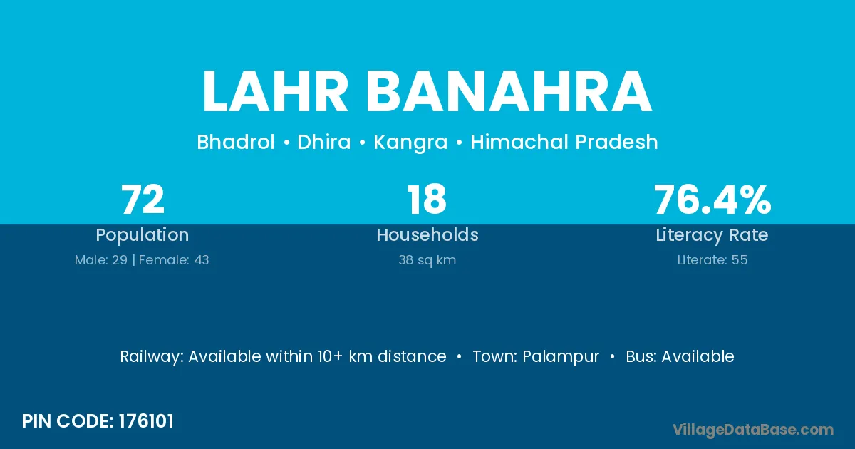 Palampur is the nearest town to Lahr Banahra village for major economic activities