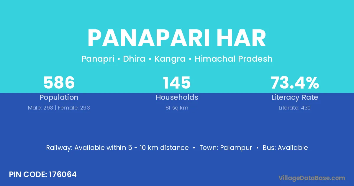 Panapari Har village has a total population of 586 people, of which 293 are males and 293 are females.
