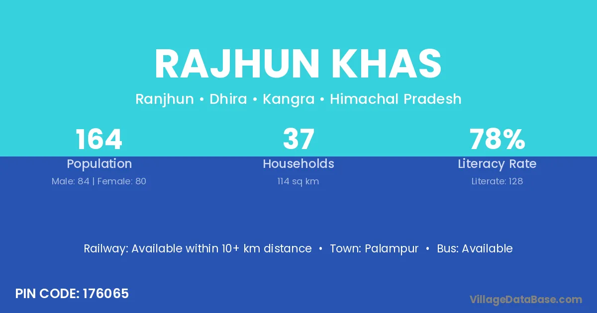 Palampur is the nearest town to Rajhun Khas village for major economic activities