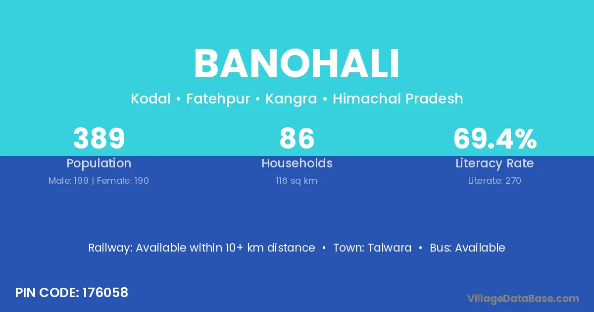 Talwara is the nearest town to Banohali village for major economic activities