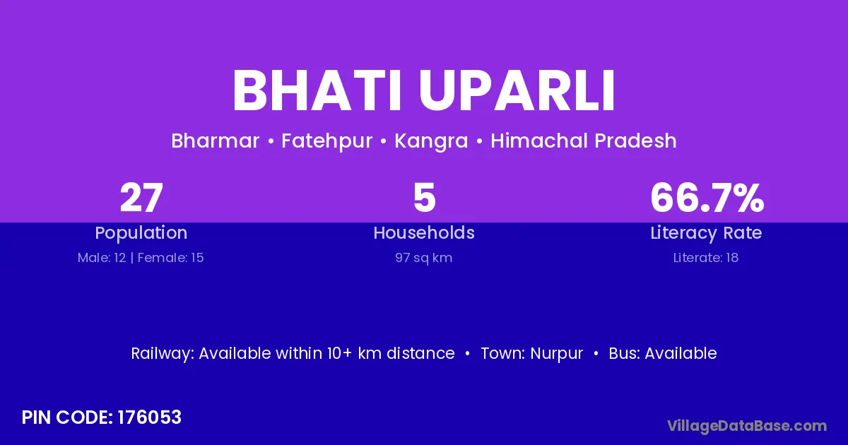 Bhati Uparli village is located in the Fatehpur Tehsil of the Kangra district in Himachal Pradesh .