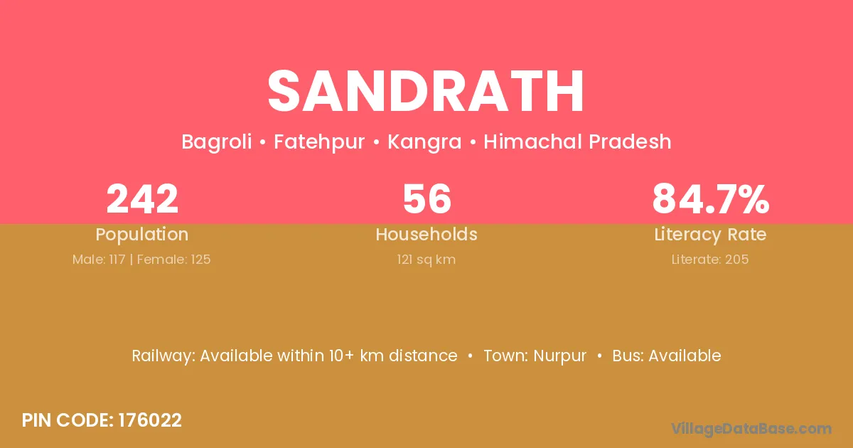 Sandrath village is located in the Fatehpur Tehsil of the Kangra district in Himachal Pradesh .