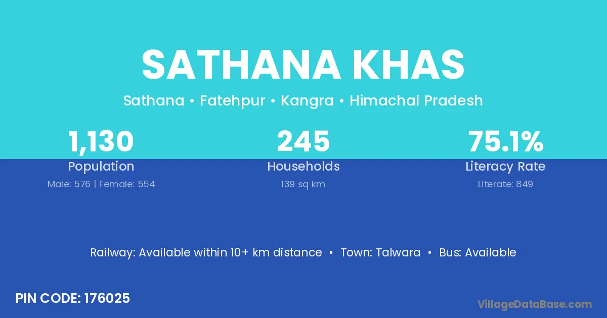 Sathana Khas village has a total population of 1,130 people, of which 576 are males and 554 are females.