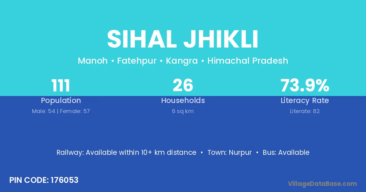 Sihal Jhikli village has a total population of 111 people, of which 54 are males and 57 are females.
