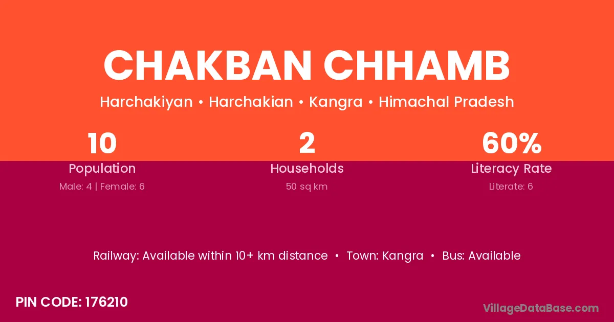 Kangra is the nearest town to Chakban Chhamb village for major economic activities