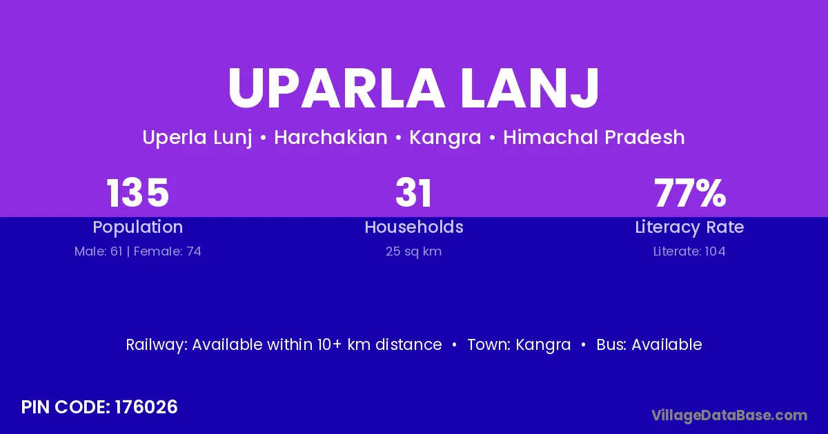 Kangra is the nearest town to Uparla Lanj village for major economic activities