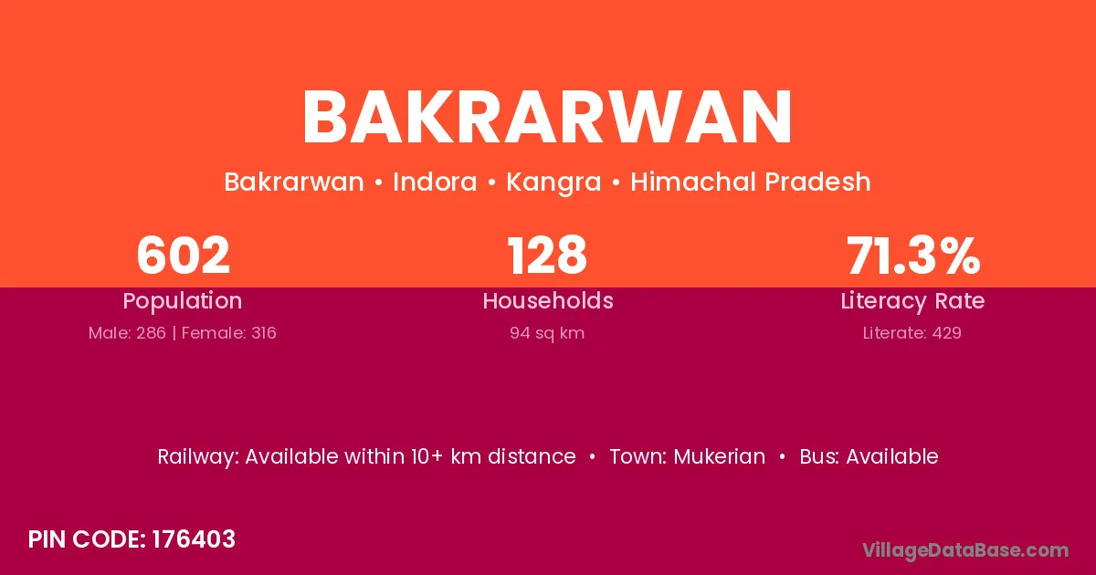 Bakrarwan village has a total population of 602 people, of which 286 are males and 316 are females.