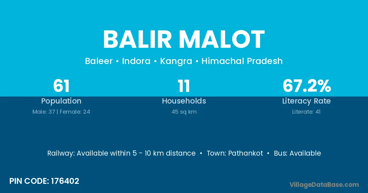 Balir Malot village has a total population of 61 people, of which 37 are males and 24 are females.