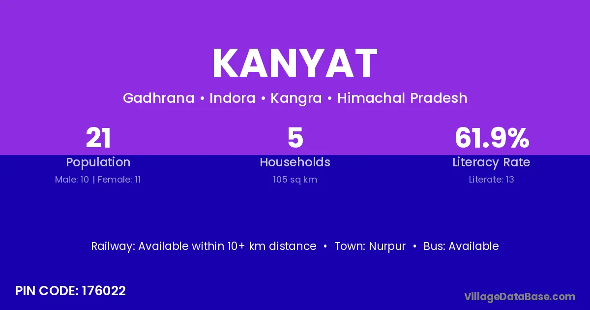 According to Census 2011 information, the village code of Kanyat village is 176022.