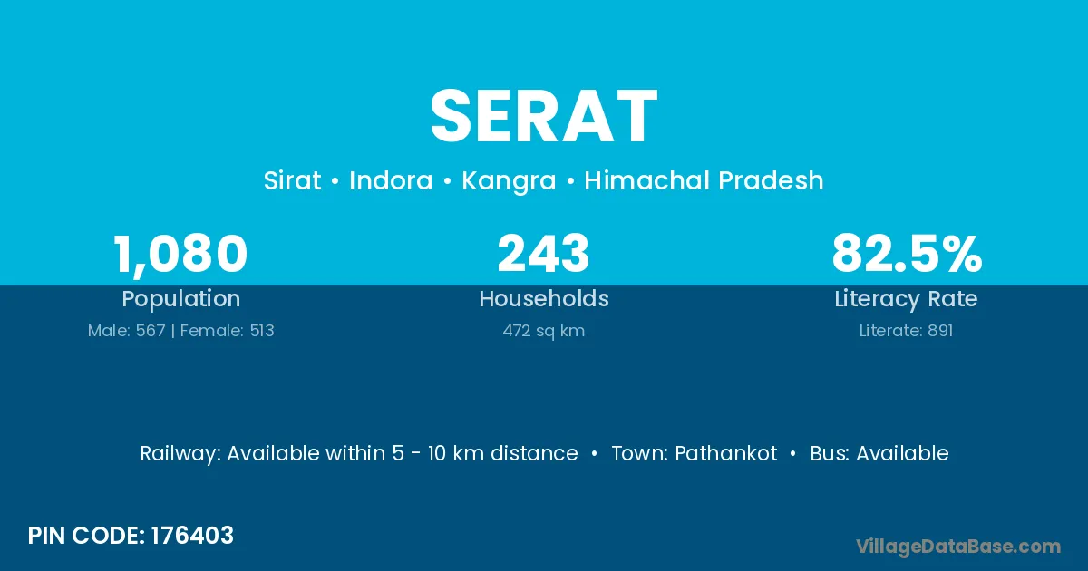 Pathankot is the nearest town to Serat village for major economic activities