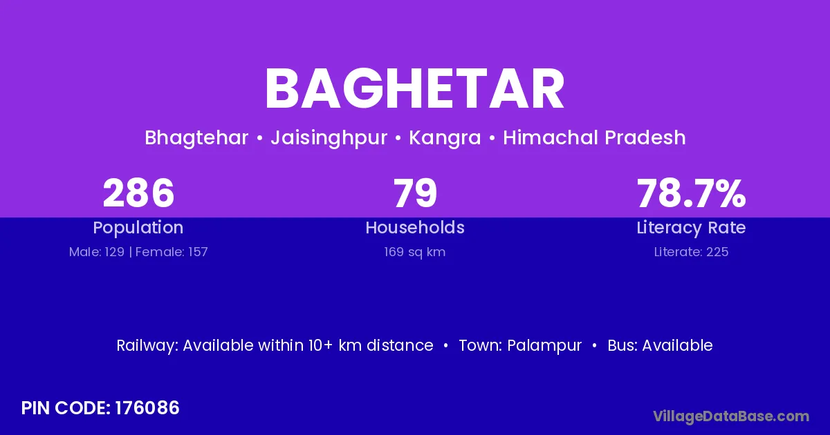 Palampur is the nearest town to Baghetar village for major economic activities