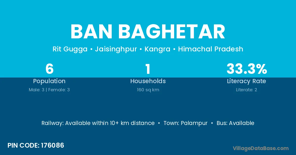 Palampur is the nearest town to Ban Baghetar village for major economic activities