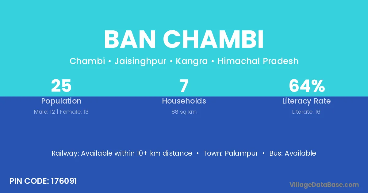 Palampur is the nearest town to Ban Chambi village for major economic activities