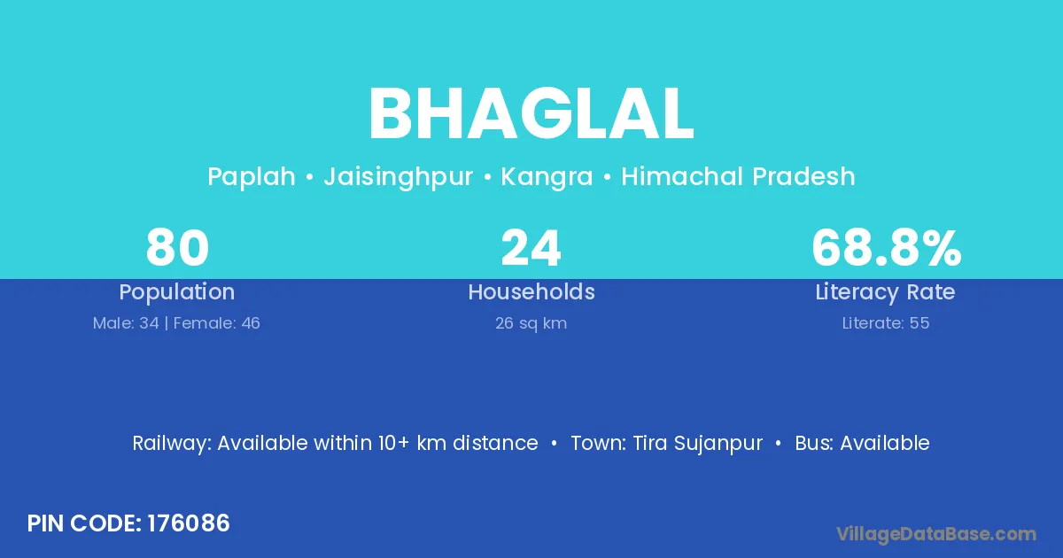 Tira Sujanpur is the nearest town to Bhaglal village for major economic activities