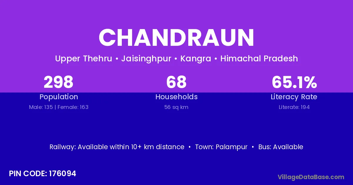 Palampur is the nearest town to Chandraun village for major economic activities