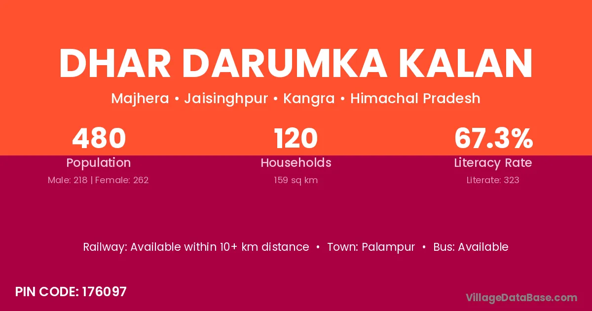 Palampur is the nearest town to Dhar Darumka Kalan village for major economic activities