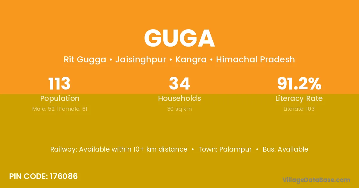 Palampur is the nearest town to Guga village for major economic activities