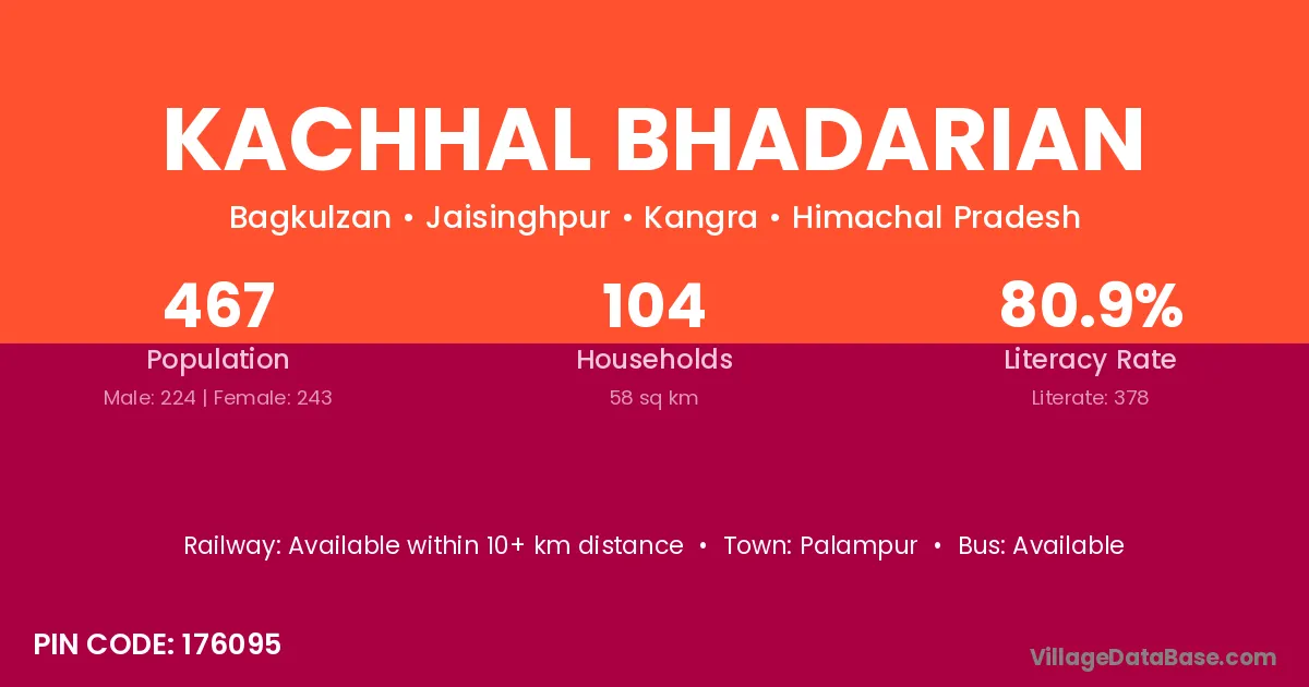 Palampur is the nearest town to Kachhal Bhadarian village for major economic activities