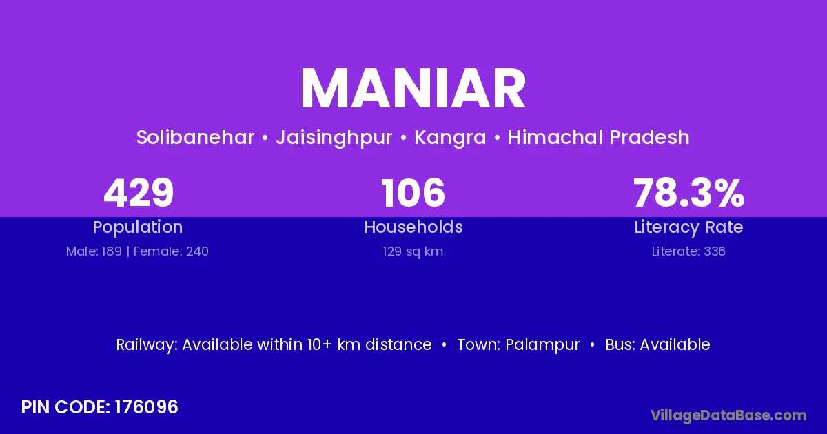 Maniar village is located in the Jaisinghpur Tehsil of the Kangra district in Himachal Pradesh .