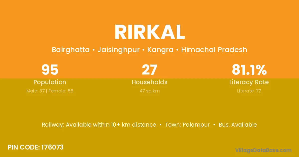 Palampur is the nearest town to Rirkal village for major economic activities