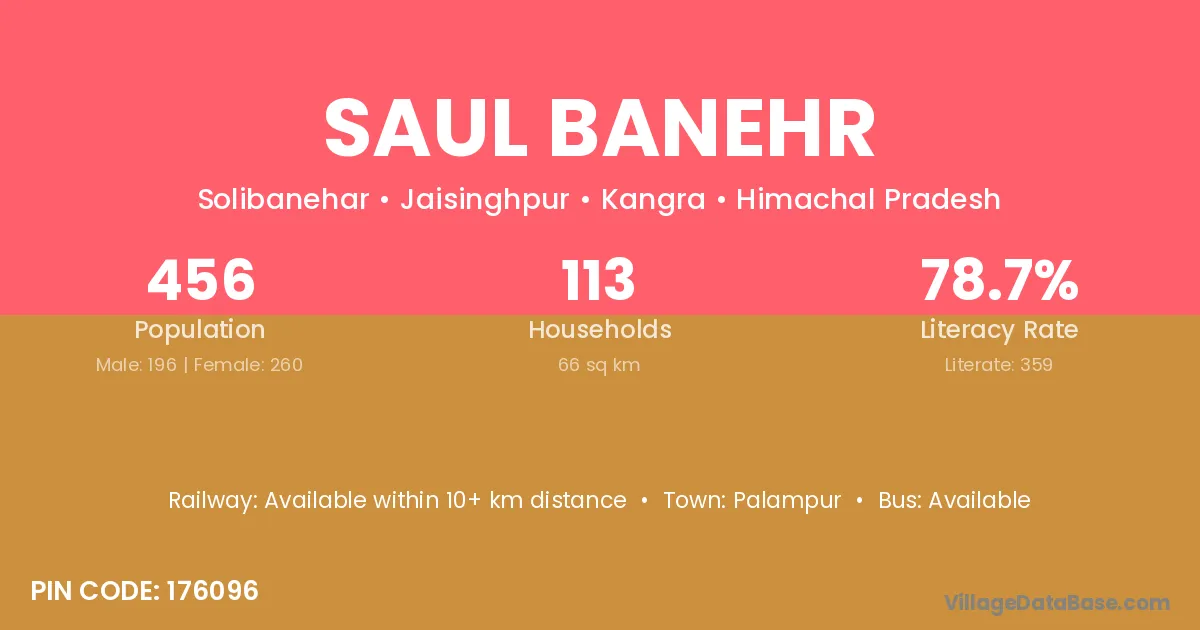 Palampur is the nearest town to Saul Banehr village for major economic activities