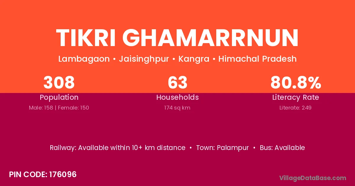 Palampur is the nearest town to Tikri Ghamarrnun village for major economic activities