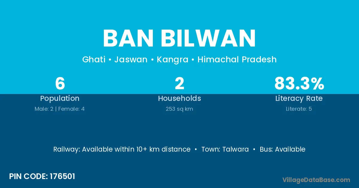 Ban Bilwan village is located in the Jaswan Tehsil of the Kangra district in Himachal Pradesh .