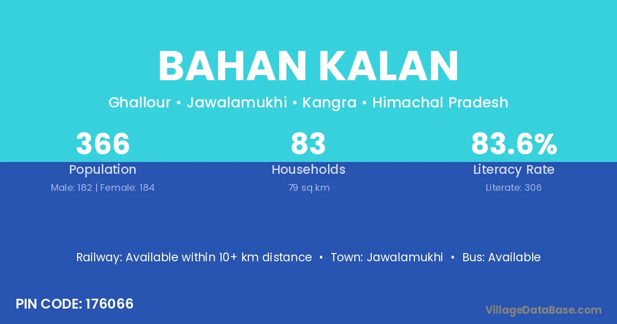 Jawalamukhi is the nearest town to Bahan Kalan village for major economic activities