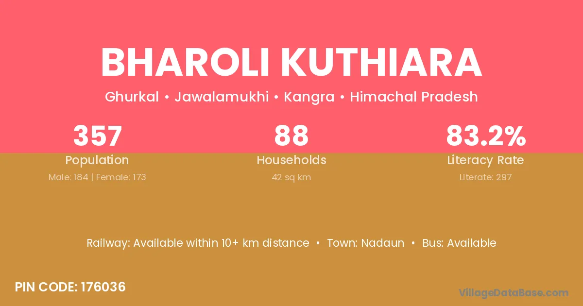 Bharoli Kuthiara village has a total population of 357 people, of which 184 are males and 173 are females.