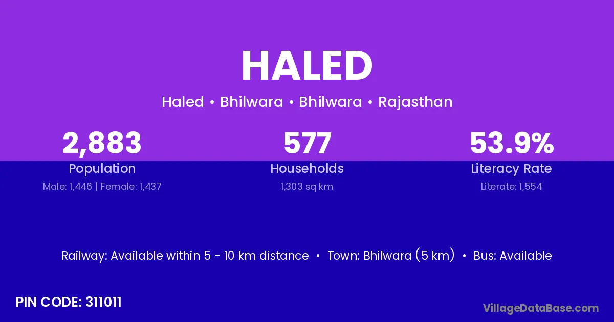 According to Census 2011 information, the village code of Haled village is 176036.
