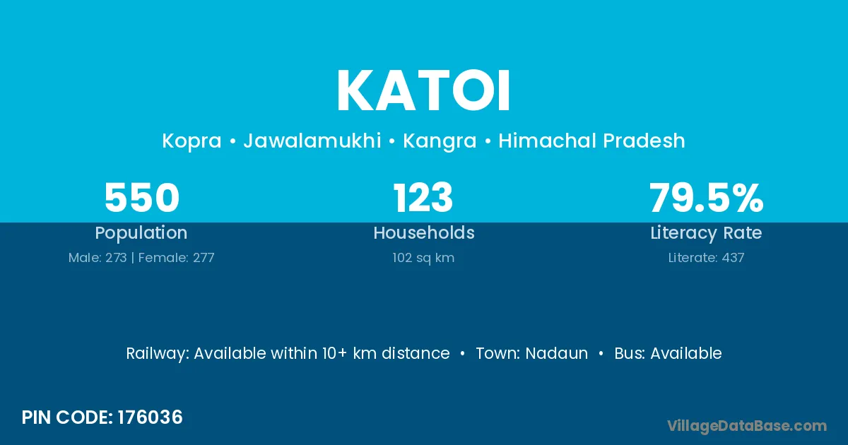 Katoi village has a total population of 550 people, of which 273 are males and 277 are females.