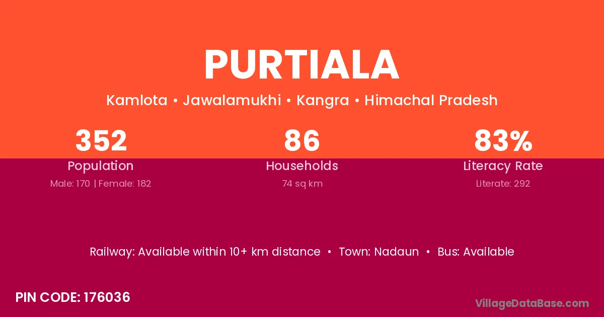 Nadaun is the nearest town to Purtiala village for major economic activities