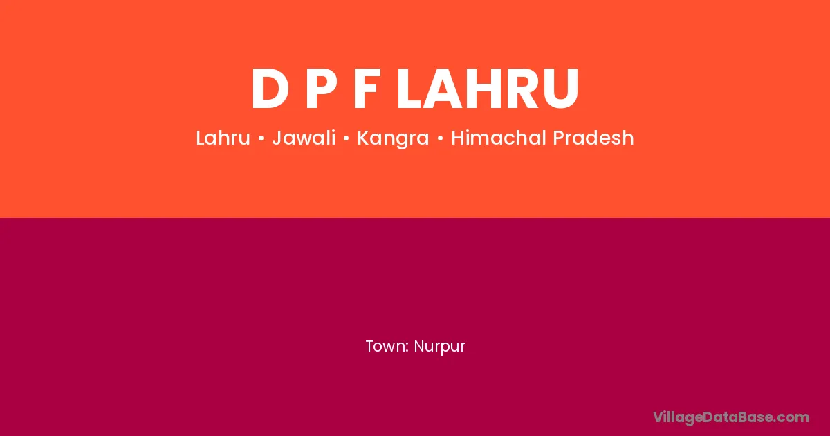 D P F Lahru village is located in the Jawali Tehsil of the Kangra district in Himachal Pradesh .