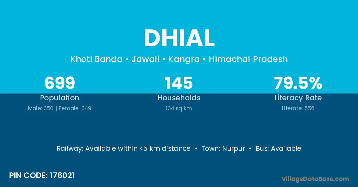 According to Census 2011 information, the village code of Dhial village is 176021.