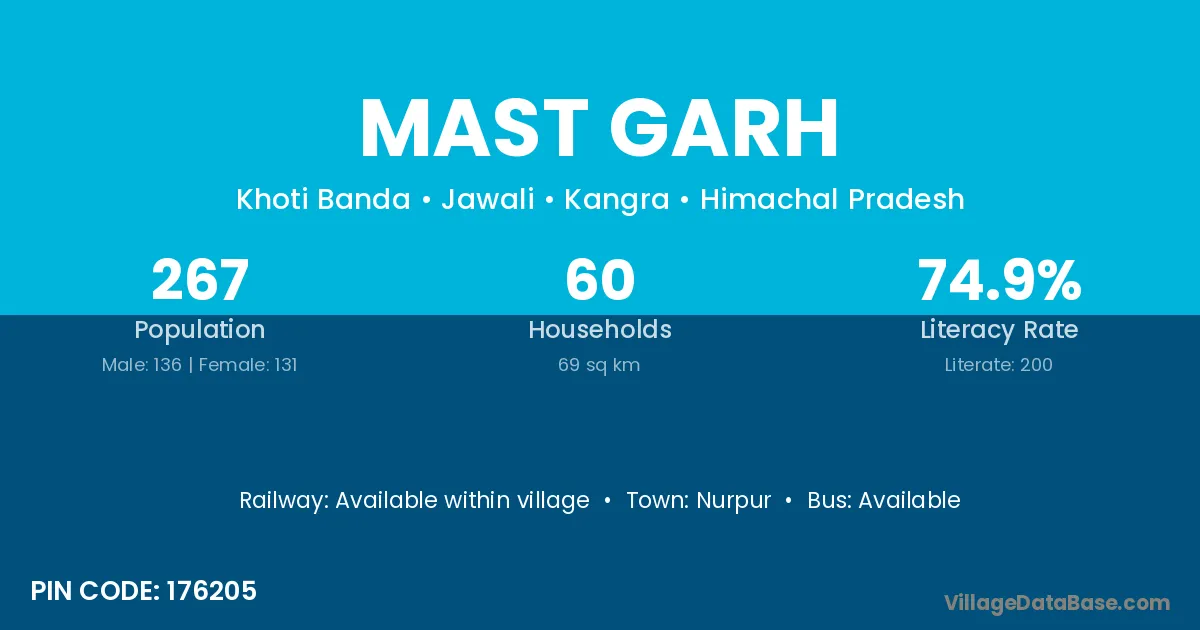 Mast Garh village has a total population of 267 people, of which 136 are males and 131 are females.